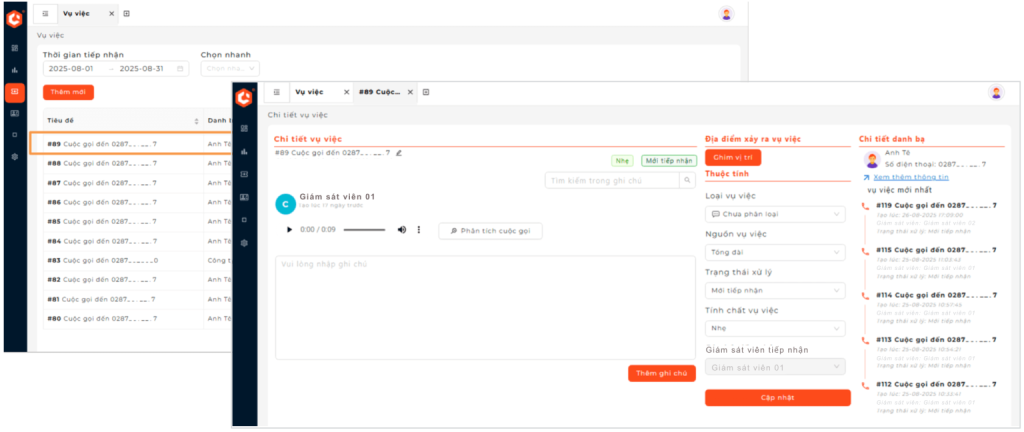 - Quản lý vụ việc tập trung (Case Management) theo thời gian thực